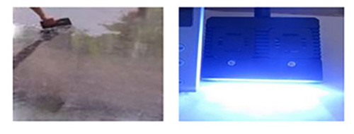 覆膜轉印修補法:將終飾面的相對平整度提高,涂上覆膜夜,用刮刀刮平,(注意:一定要刮平)貼上轉印膜,利用紫外線凝固燈照射1-3秒即可完成。